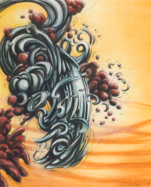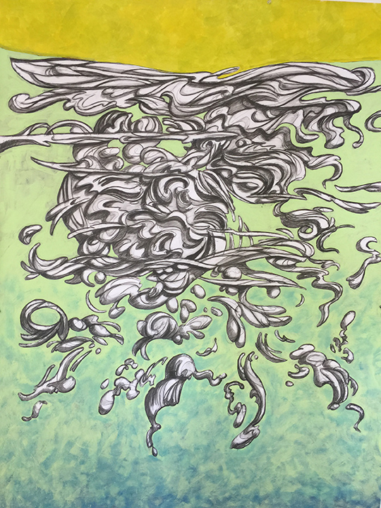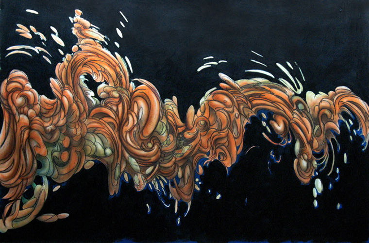 In 2007, unable to find a suitable studio for sculpture, I painted instead. My painting practice lasted for fifteen years. Painting liberated me from the limitations of gravity and physicality and introduced me to color and complexity. These paintings are largely influenced by street art, fluid dynamics, the cosmos and contemporary Asian art. In 2019 I returned to sculpture making, transformed by the freedom, knowledge and joy I experienced while painting.