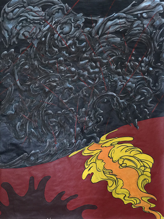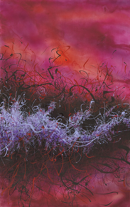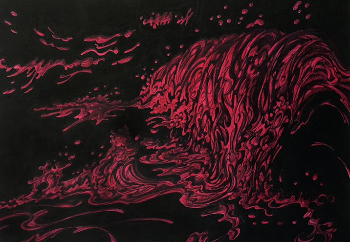 “Untitled” Red and Black, Acrylics and Marking Crayon, 45X60″, 2014