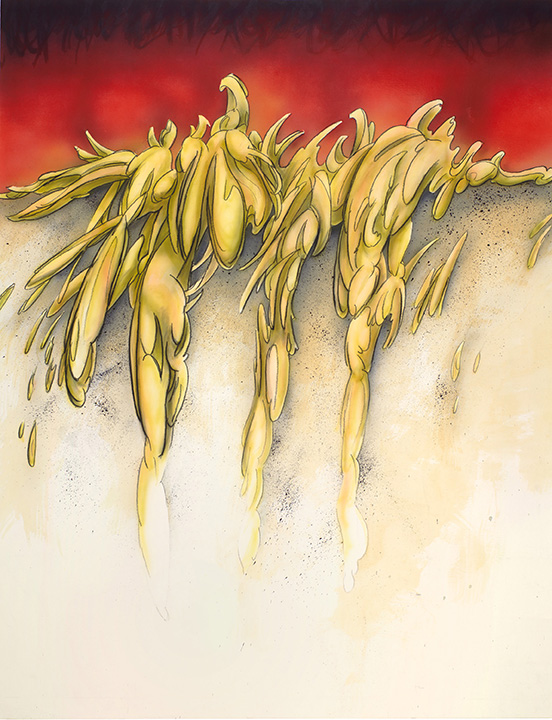 “Untitled” Red and Yellow,, WC and Marking Crayon, 48X36″, 2006
