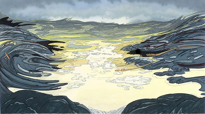 “The Citadel”, Acrylic, WC, Marking Crayon, 50X35″, 2012